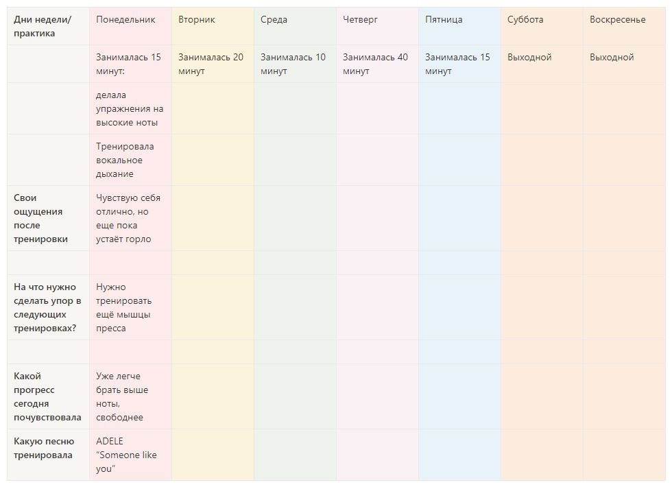 Дневник Вокалиста станет отличным помощником во время тренировок как в домашних условиях, так и на курсах, марафонах, занятиях с тренером!