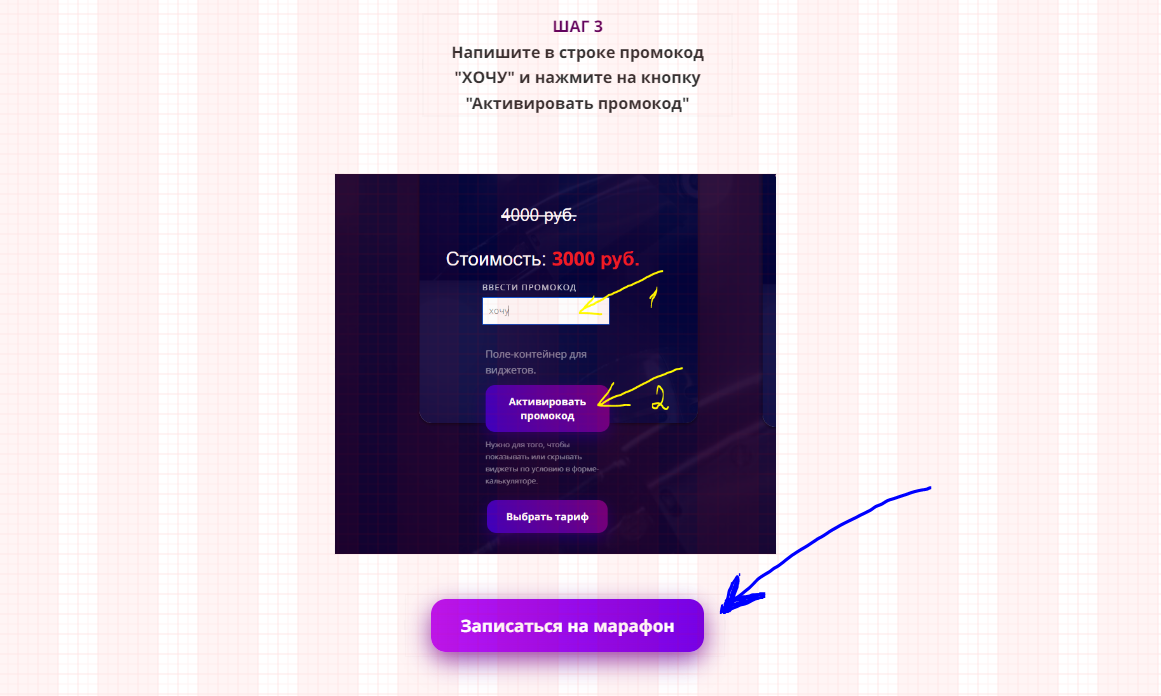 Прочитайте описание марафона и далее переходите в раздел Тарифы